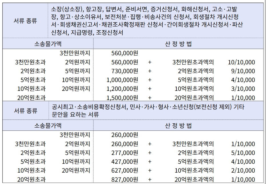 | 민사/가사 서면 | 표준 수수료 기반 난이도 가산 | 증거 자료의 논리적 반영 | 답변서 작성 추천 |
